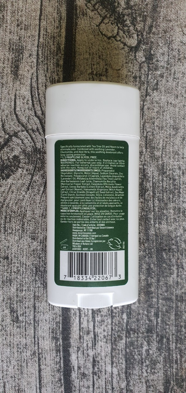 Được pha trộn với Oải hương dịu nhẹ, chất khử mùi không chứa nhôm này giúp bảo vệ mùi lâu dài và làm dịu da. Dầu Neem có tính sát khuẩn và Tinh dầu Trà Úc giúp trung hòa vi khuẩn gây mùi, trong khi Oải hương, Cúc la mã và Lô hội giúp làm dịu làn da nhạy cảm.