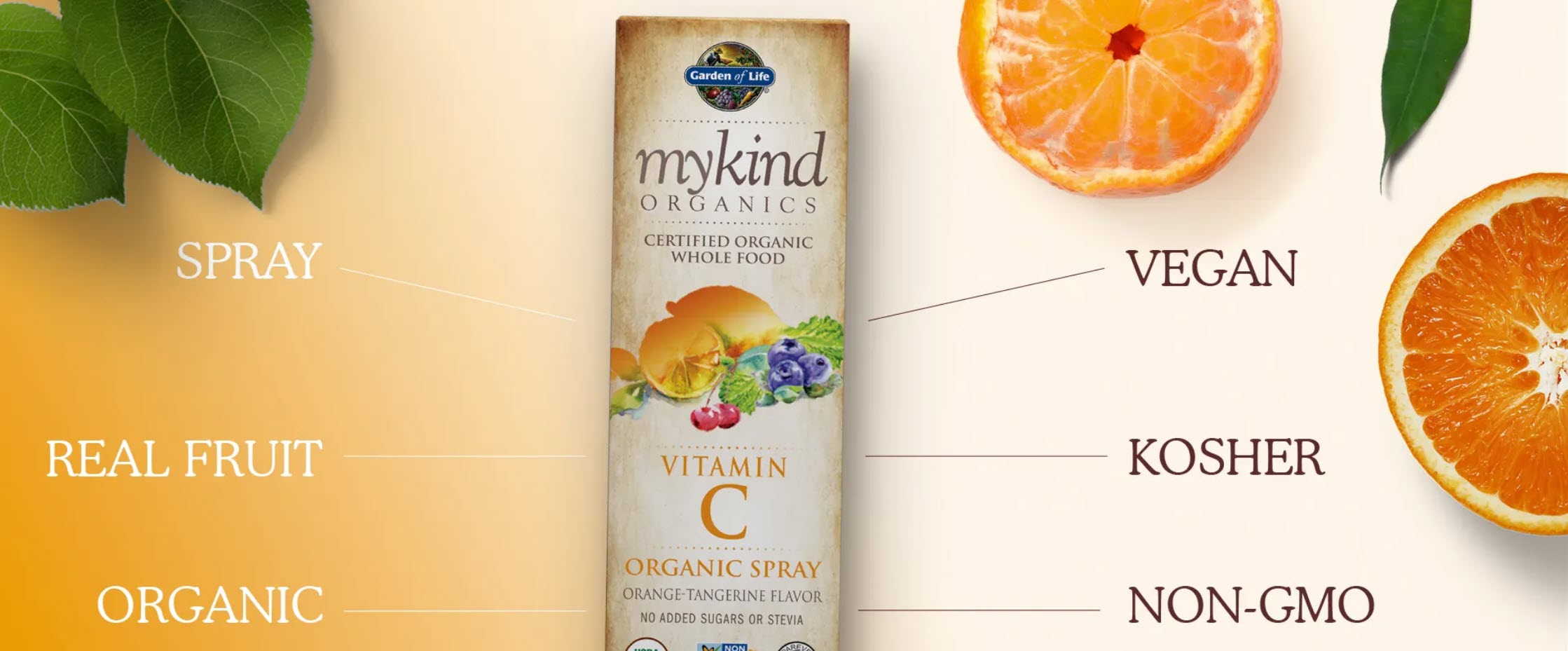 Vitamin C mykind Organics là một loại thực phẩm toàn phần, công thức vitamin C đã được chứng nhận hữu cơ bởi USDA — ở dạng xịt với vị cam-quýt dễ sử dụng, có hương vị tuyệt vời.